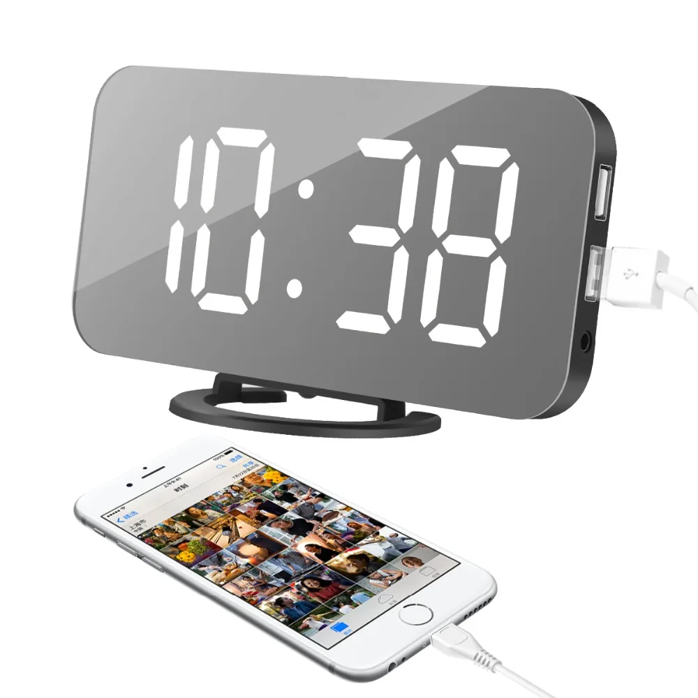 Related Product for Dual USB Port Mirror Digital LED Display Alarm Clock Snooze Function Power Bank Charging Electronic